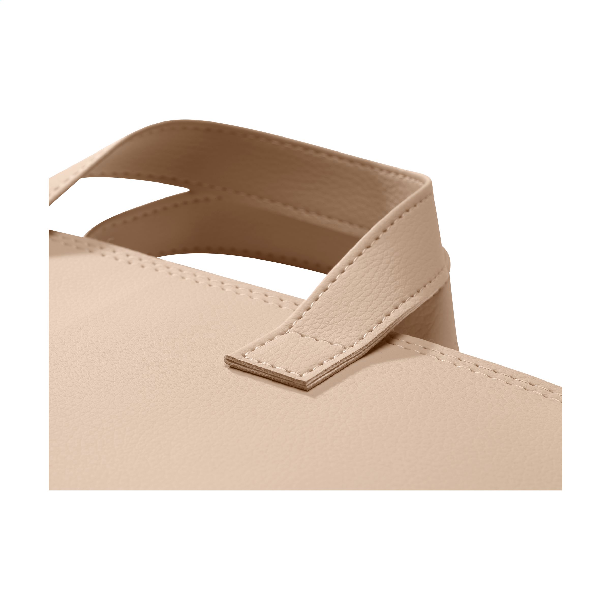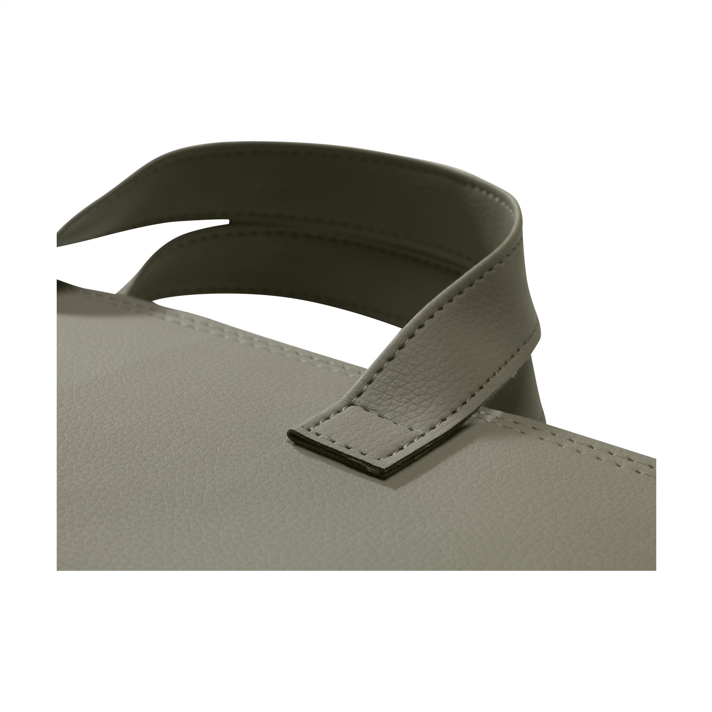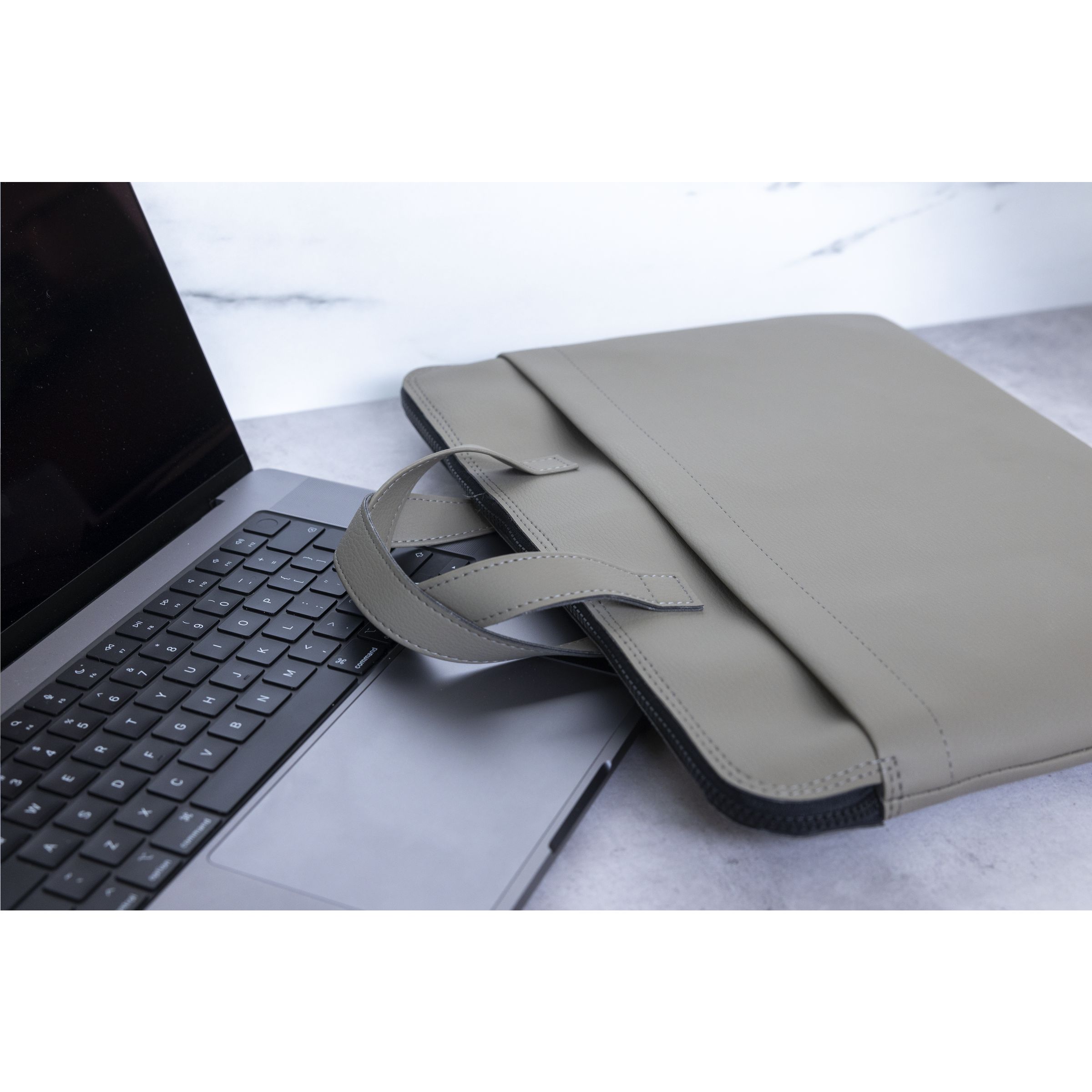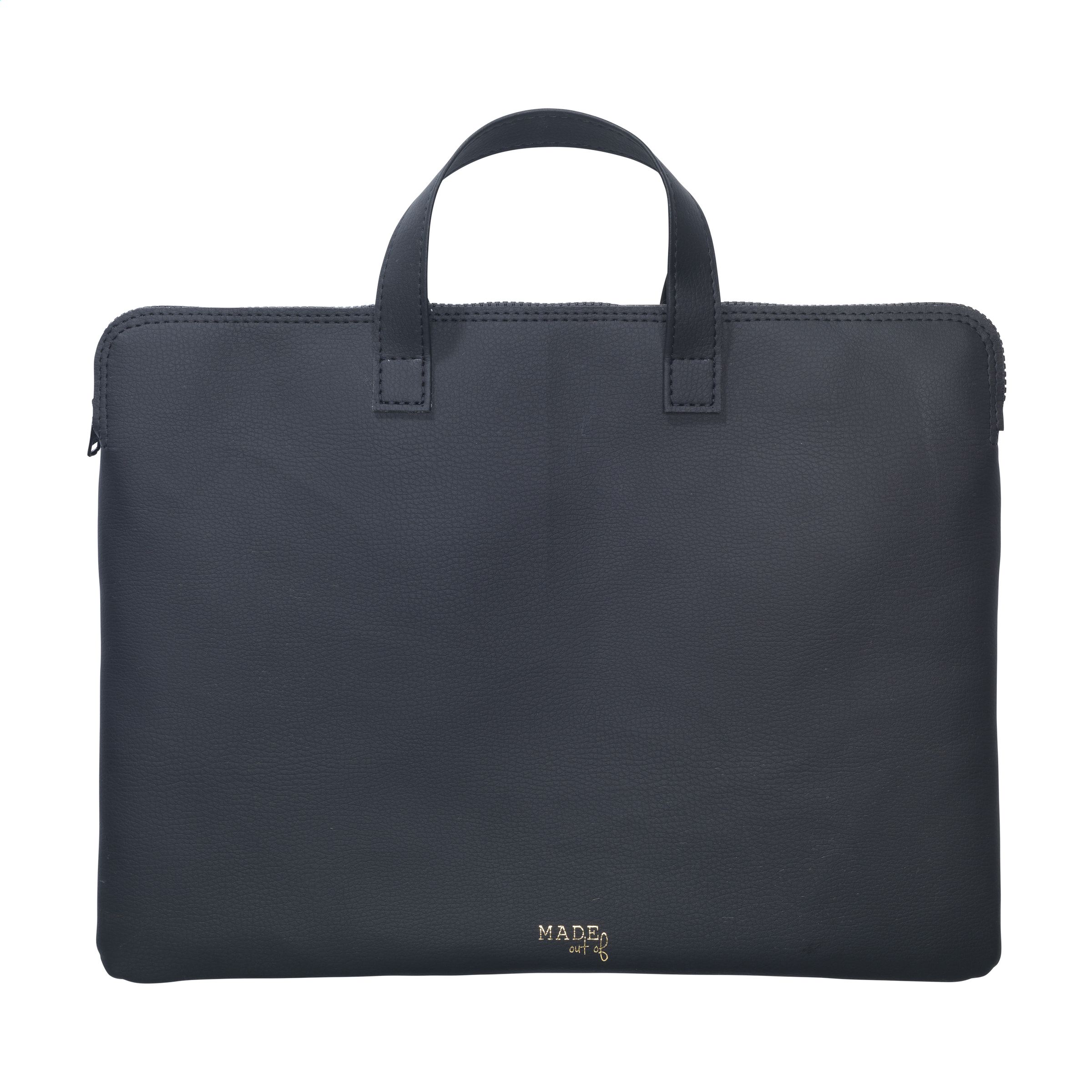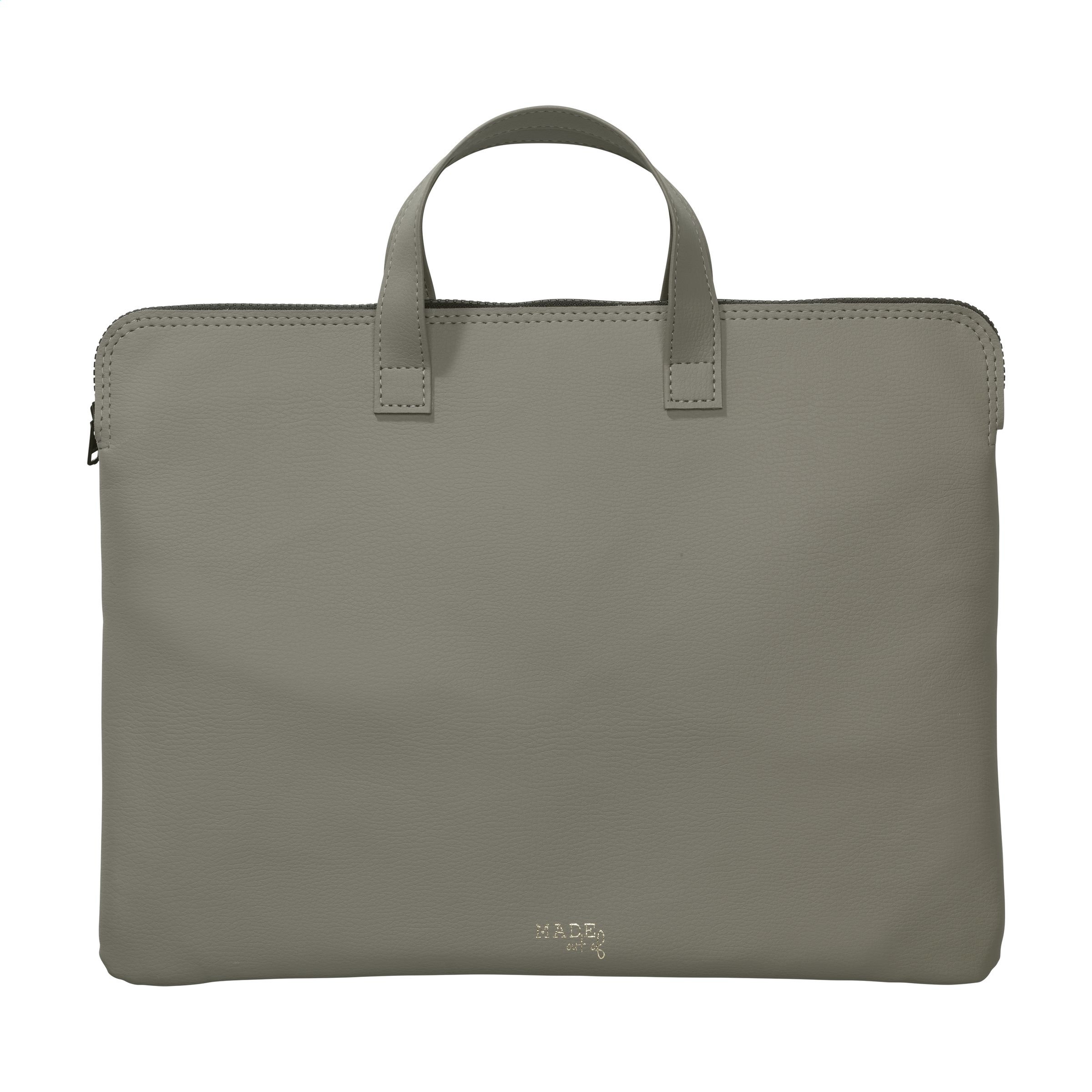 Eine luxuriöse 15/16-Zoll-Design-Laptoptasche der Marke MADE out of, die aus veganem Leder gefertigt ist.Das vegane Leder ist eine pflanzliche Alternative zu Leder. Das Fruchtfleisch von Äpfeln ist die Grundlage für die Herstellung von diesem veganem Leder, das nicht nur wie Leder aussieht, sondern sich auch so anfühlt. Die Abfälle aus den Äpfeln werden aufbereitet und anschließend mit einer Mischung aus PU, Polyester und Baumwolle verarbeitet.