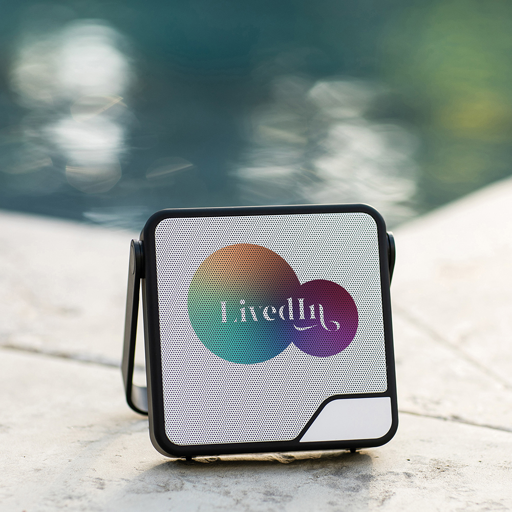 Ein tragbarer Lautsprecher mit wasserdichtem IPX 7 Schutz und integriertem Griff. Tiefe Bässe dringen durch seine 5W Leistung. Anpassbar mit abnehmbarem Gitter und Platte für Digitaldrucke. 10 Stunden Wiedergabezeit, 800-mAh-Akku und TWS-System. Umweltfreundlich, hergestellt aus recyceltem ABS-Kunststoff.