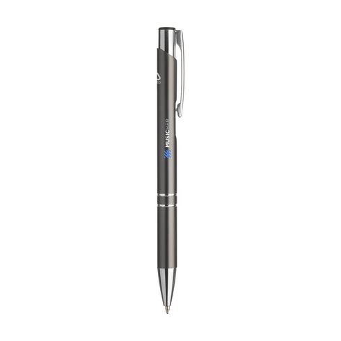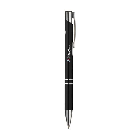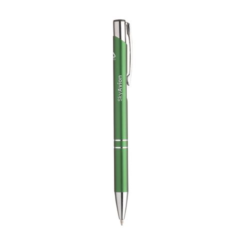 Blauschreibender Kugelschreiber aus recyceltem Aluminium. Der Halter ist mit einer wunderschön glänzenden Oberfläche im Metallic-Look versehen. Mit Metallclip. Durch die Verwendung von recyceltem Aluminium kommt eine geringere Menge an neuen Rohstoffen zum Einsatz. Das bedeutet weniger Energieverbrauch, weniger Wasserverbrauch und geringere CO2-Emissionen. Eine verantwortungsvolle Wahl.