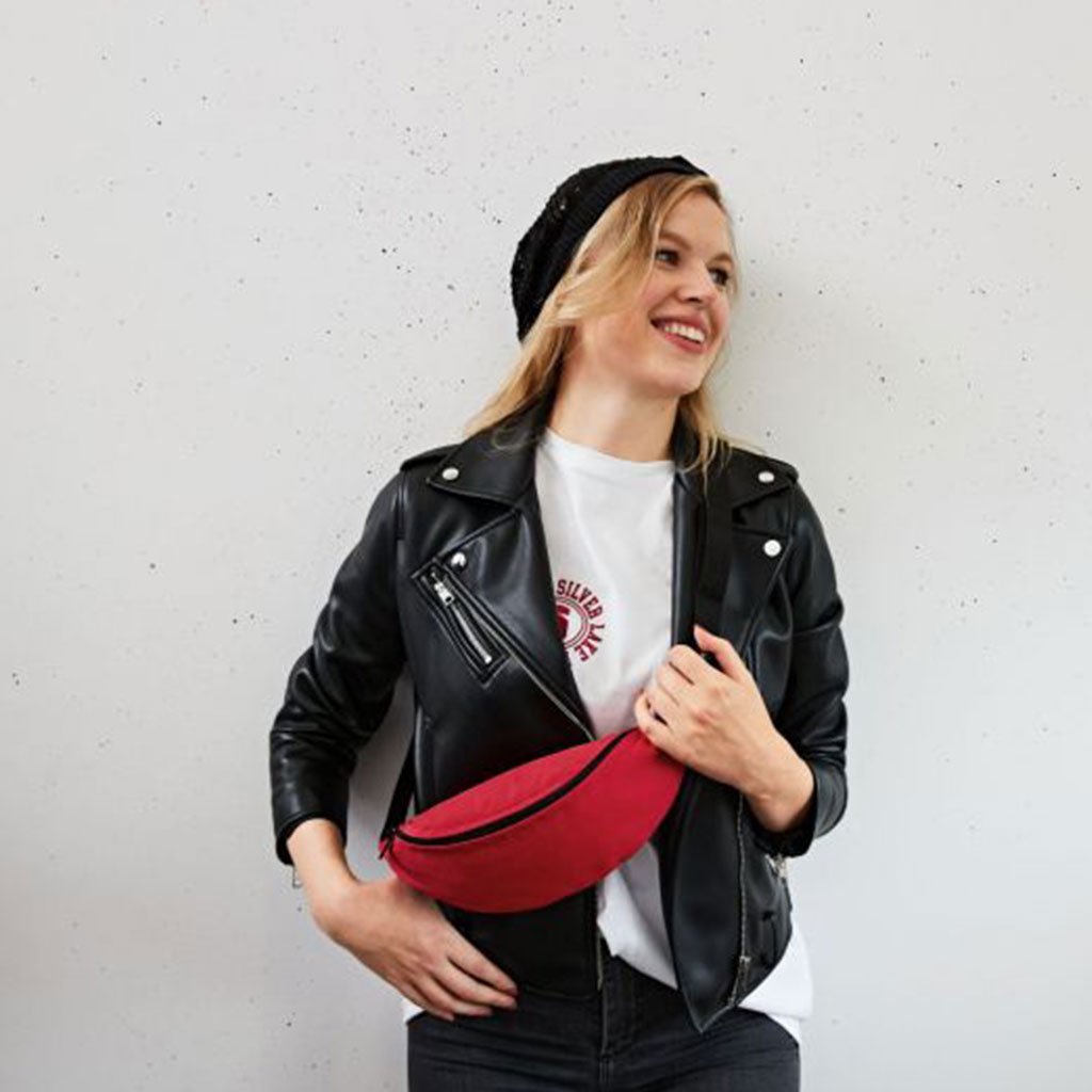 Praktische Gürteltasche (H: 12 cm, B: 29 cm, T: 8 cm) mit Reißverschluss-Hauptfach und rückseitigem Sicherheitsfach.