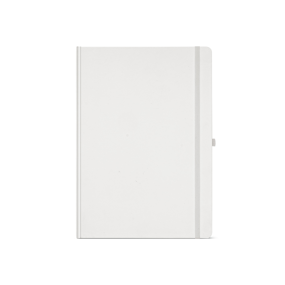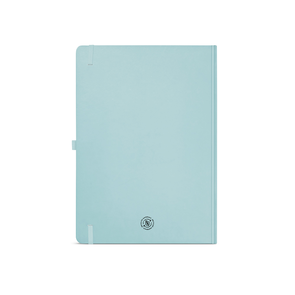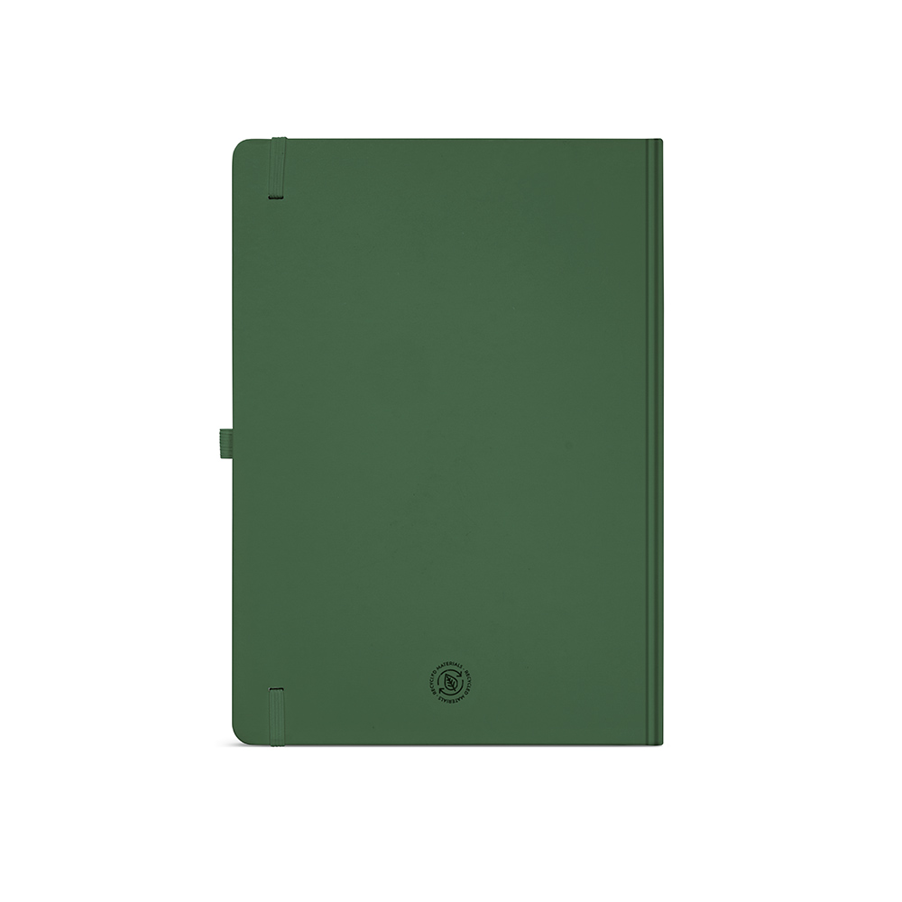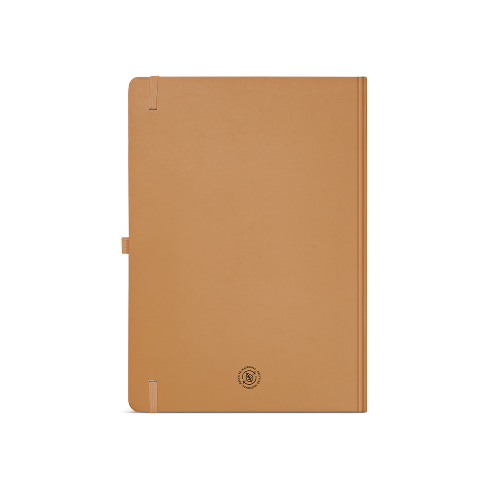 Din A5: Unser A5-Notizbuch hat einen Einband aus Recyclingpapier mit 196 elfenbeinfarbenen linierten FSC-Seiten (70 g/m²). Es verfügt über einen stabilen Hardcover-Einband, abgerundete Ecken und ein Lesezeichen mit Band. Außerdem verfügt es über einen elastischen Verschluss, eine erweiterbare Tasche und einen Stifthalter.