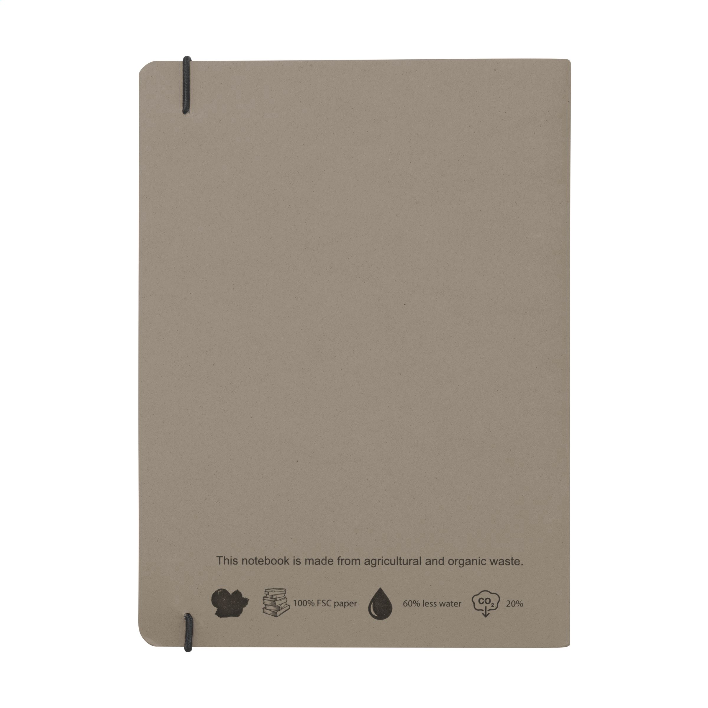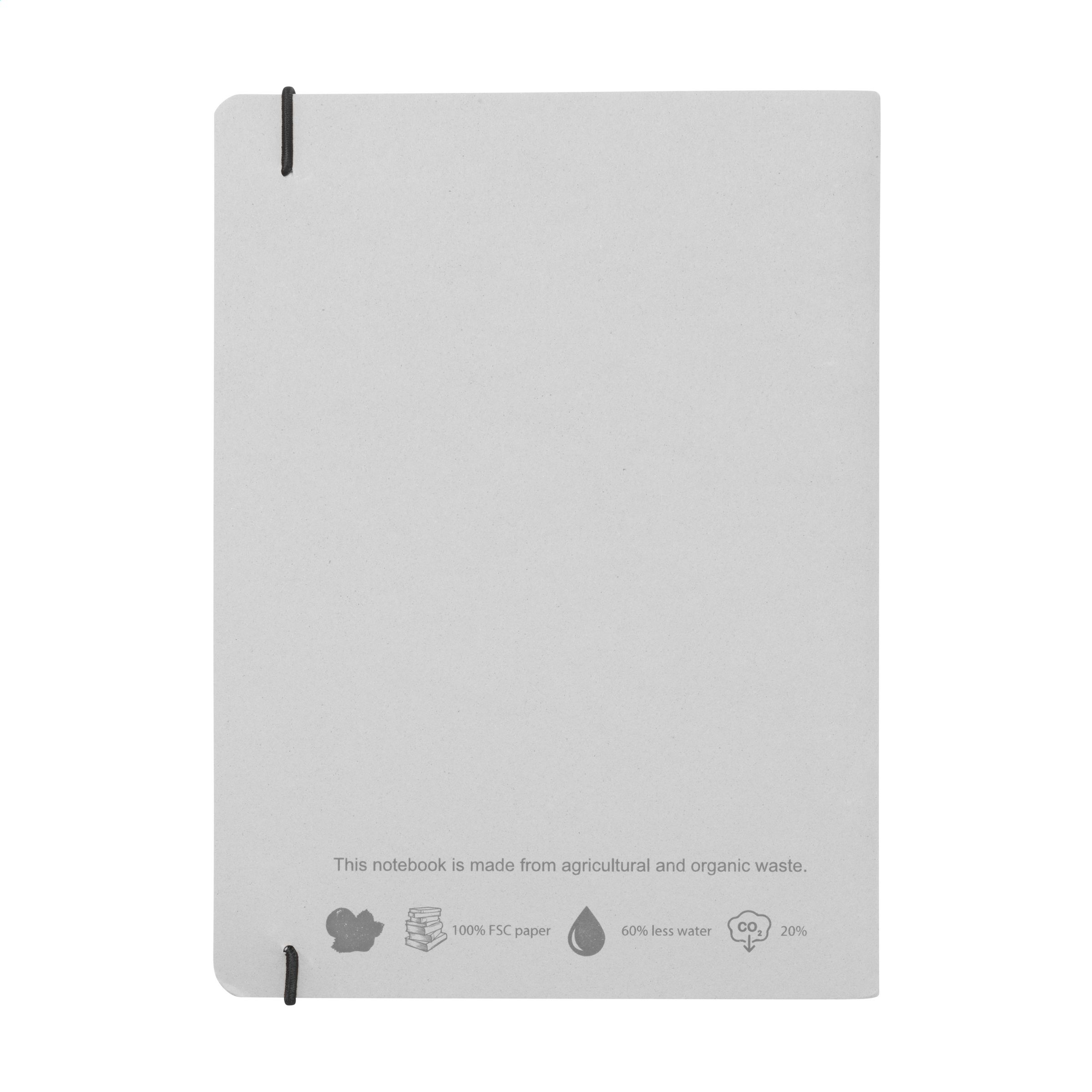 WoW! Nachhaltiges Notizbuch im A5-Format. Mit 32 Blatt/64 Seiten liniertem Papier (80 g/m²). Der papierlose Softcover-Einband besteht aus landwirtschaftlichen und organischen Abfällen, z. B. von Tomaten, Paprika, Pflanzen und Zwiebeln. Diese Abfälle werden mit Recyclingpapier aus Europa gemischt. Ein praktisches und umweltfreundliches Notizbuch, um Ideen zu notieren und festzuhalten.