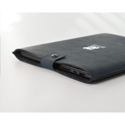 Zum Schutz des Laptops hat die Hülle einen Druckknopfverschluss und ist mit recyceltem Wollfilz gefüttert, der zu 50% aus recyceltem Material, zu 30% aus Wolle und zu 20% aus PE besteht. Handgefertigt.