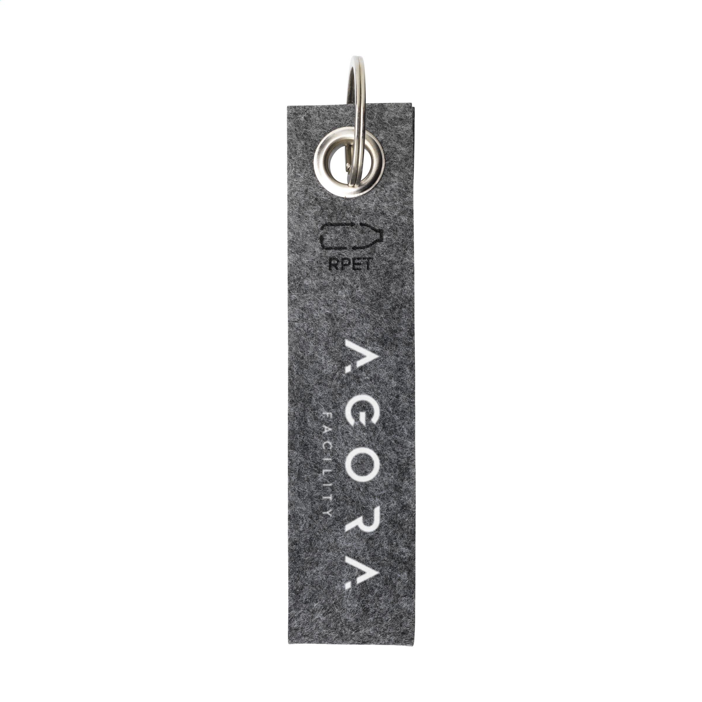 Nachhaltiger Schlüsselanhänger aus RPET-Filz. Dieser Filz wird aus recycelten PET-Flaschen und recycelten Textilien hergestellt. Ausgestattet mit einem robusten Schlüsselring.