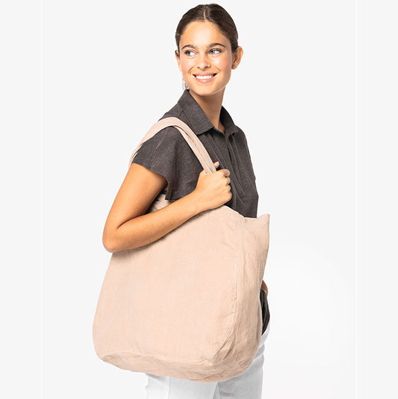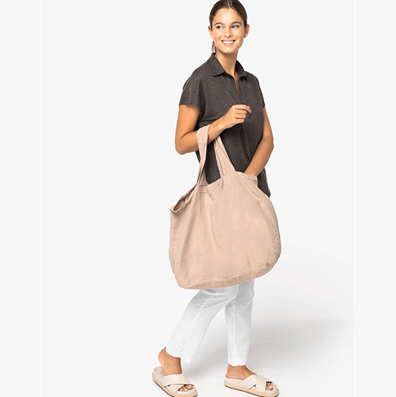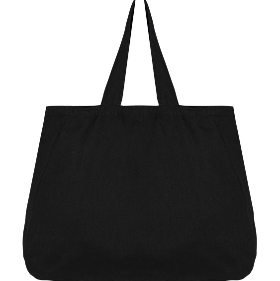 Abgerundete Tasche mit breiten Handgriffen. Seitlicher Einsatz.