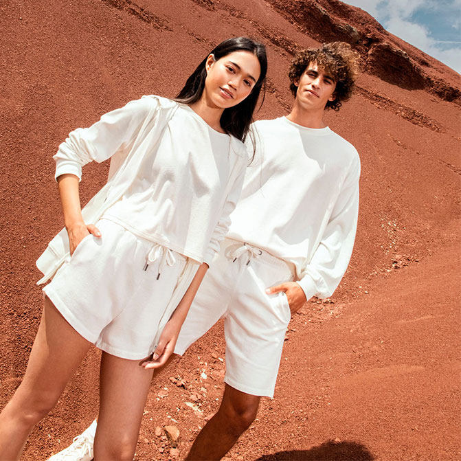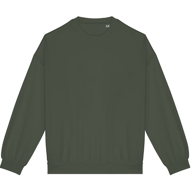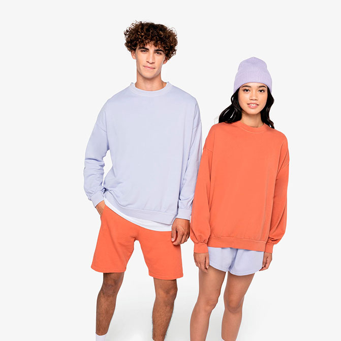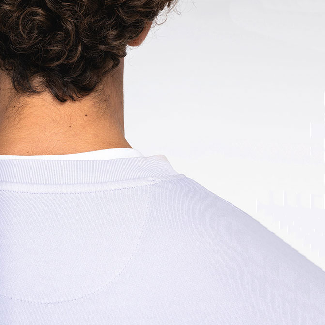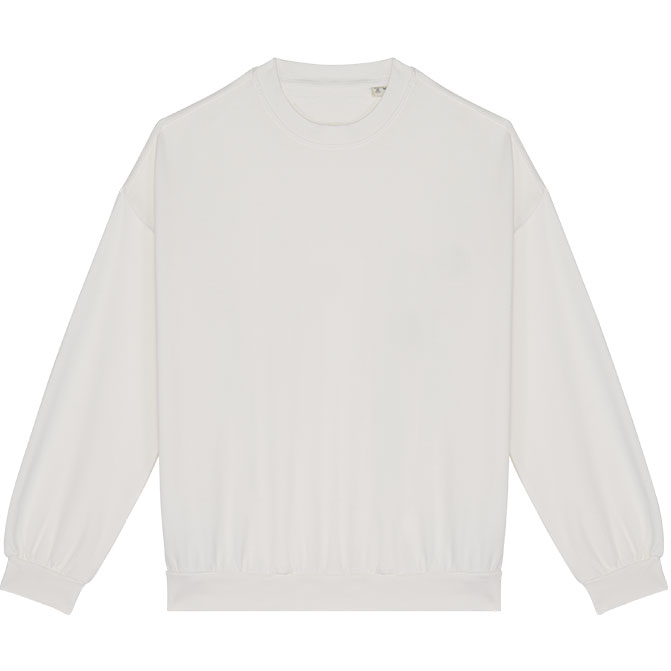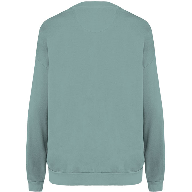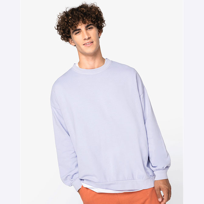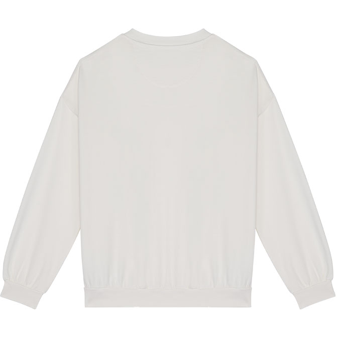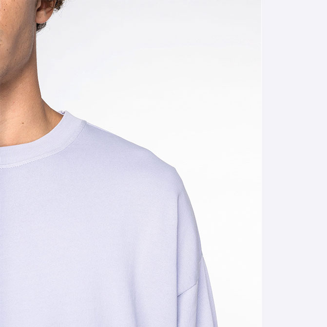 Gekämmte Ringspun-Baumwolle. Oversized-Schnitt mit überschnittener Schulterpartie. Enzymwäsche. Schulterpartie und Puffärmeln Ungebürstetes Fleece (French Terry). Halbmond am Rücken. Überdecknaht an Halsausschnitt, Ärmeln, Ärmelabschlüssen und Saum. 1 x 1 Rippstrick am Saum Halsausschnitt mit Nackenband auf der Innenseite mit Fischgrätmuster. Färbung des fertig genähten Kleidungsstücks: leichte Farbabweichungen der Teile möglich. Dieses Produkt könnte abfärben, wenn es mit hellen Oberflächen oder Kleidungsstücken in Berührung kommt.