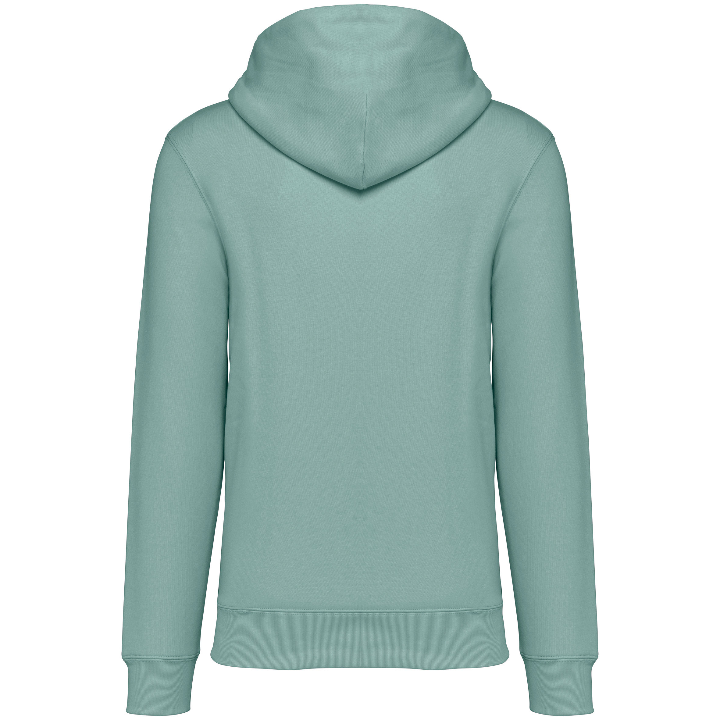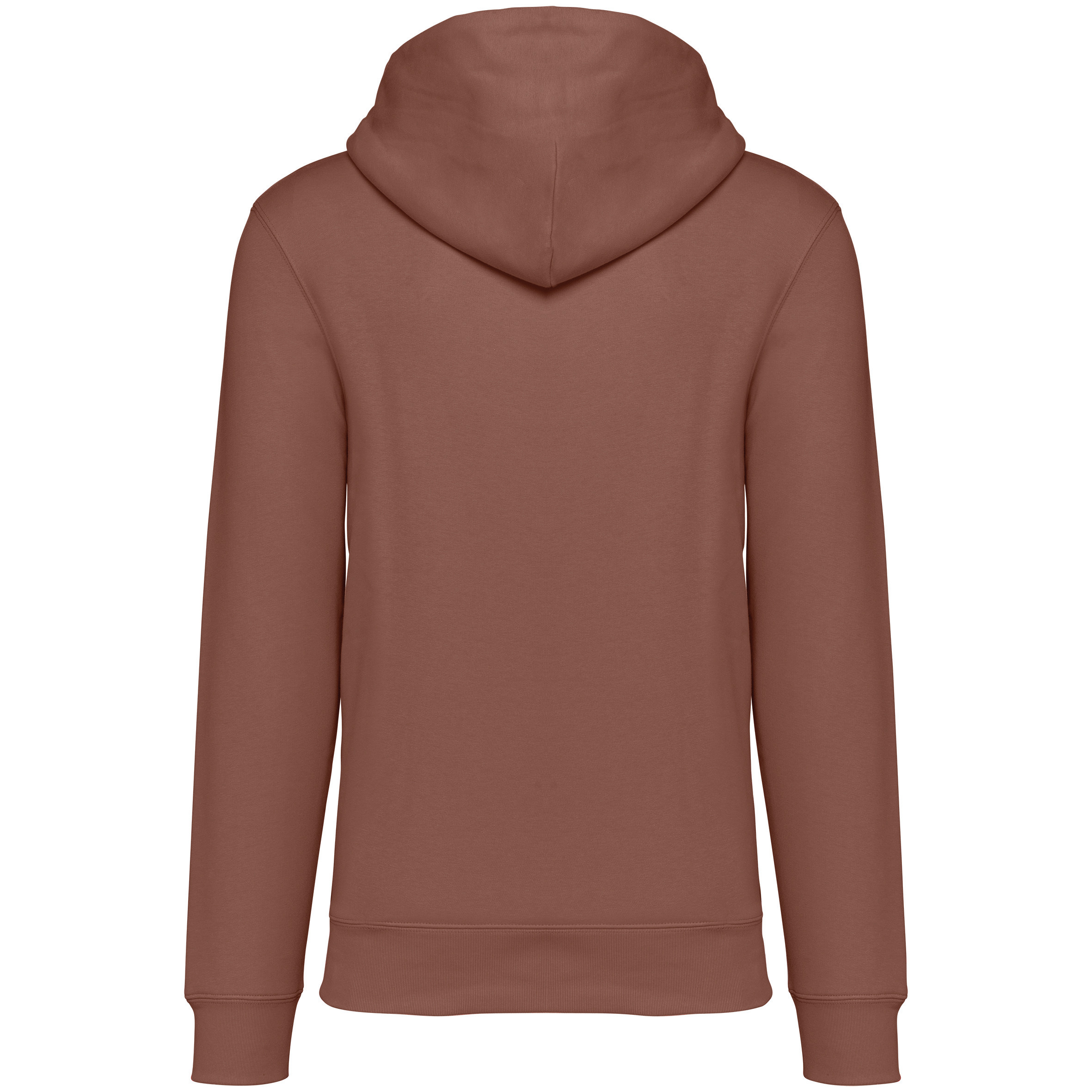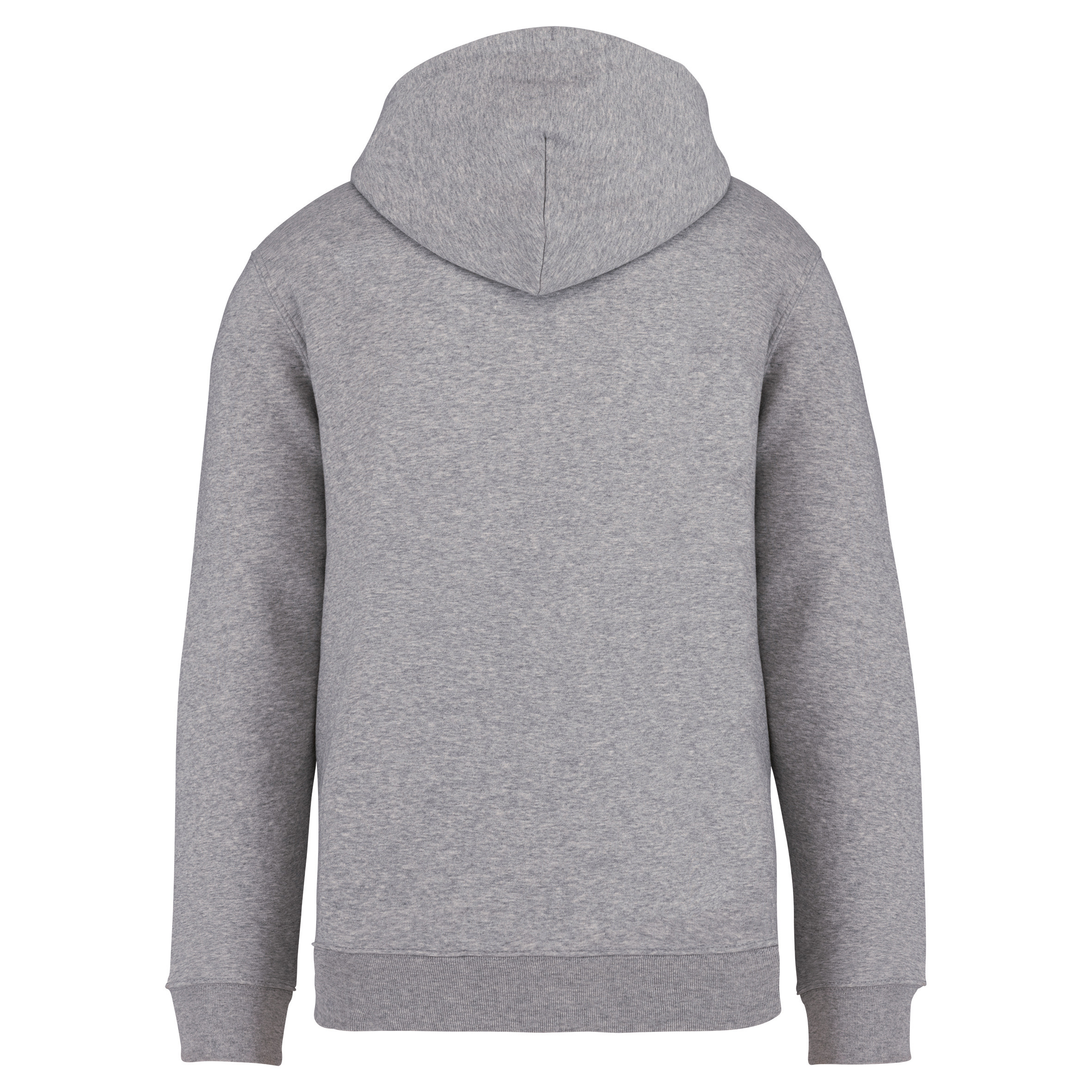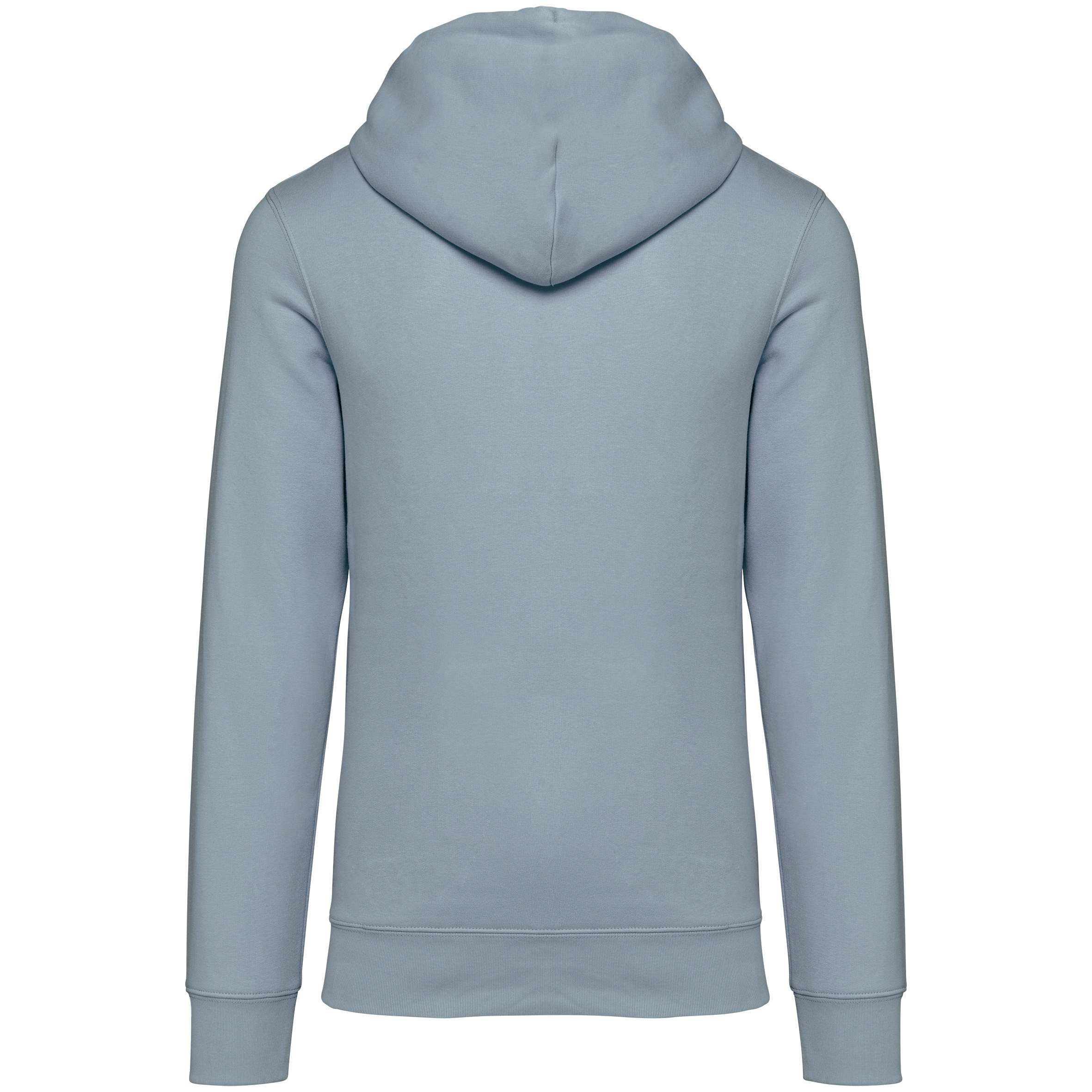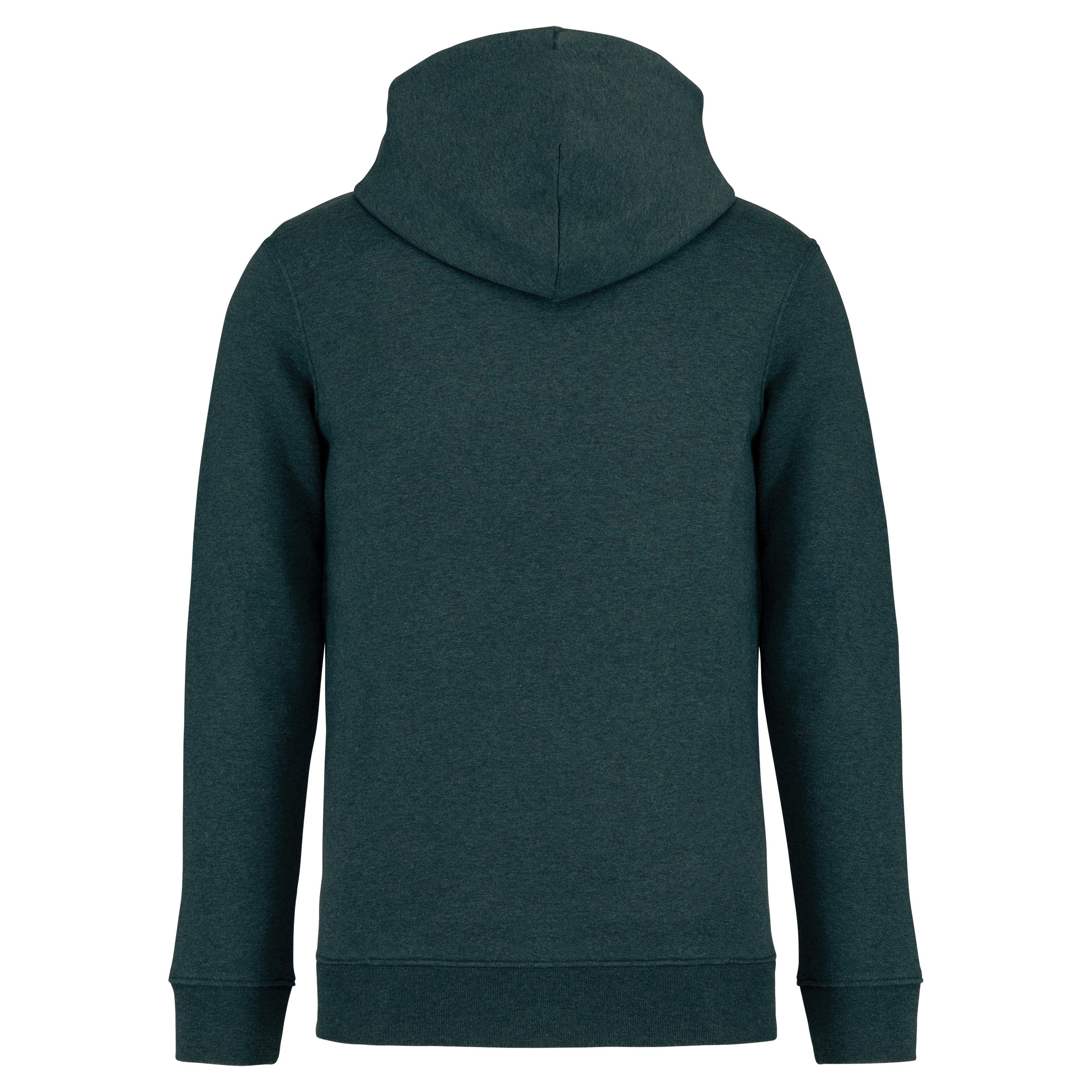 85 % Bio-Baumwolle / 15 % Post-Consumer-Polyester. Gekämmte Ringspun-Baumwolle. Körpernaher Schnitt. Enzymwäsche. Gebürstetes Molton, 3-fädiges LSF (Low Shrinkage Fleece: vorgeschrumpfter Molton). Halbmond am Rücken. Kängurutasche. Strickbündchen 1 x 1 am Saum und Ärmelbündchen. Doppel-Ziernaht an Ärmelbündchen, Armlöchern, Saum und Halbmond. Nackenband auf der Innenseite am. Halsausschnitt am Rücken. Gefütterte Kapuze aus Hauptmaterial mit Verstärkungsstich für Kordel. Abgerundeter Kordelzug mit Kappen und Ösen aus recyceltem Metall.