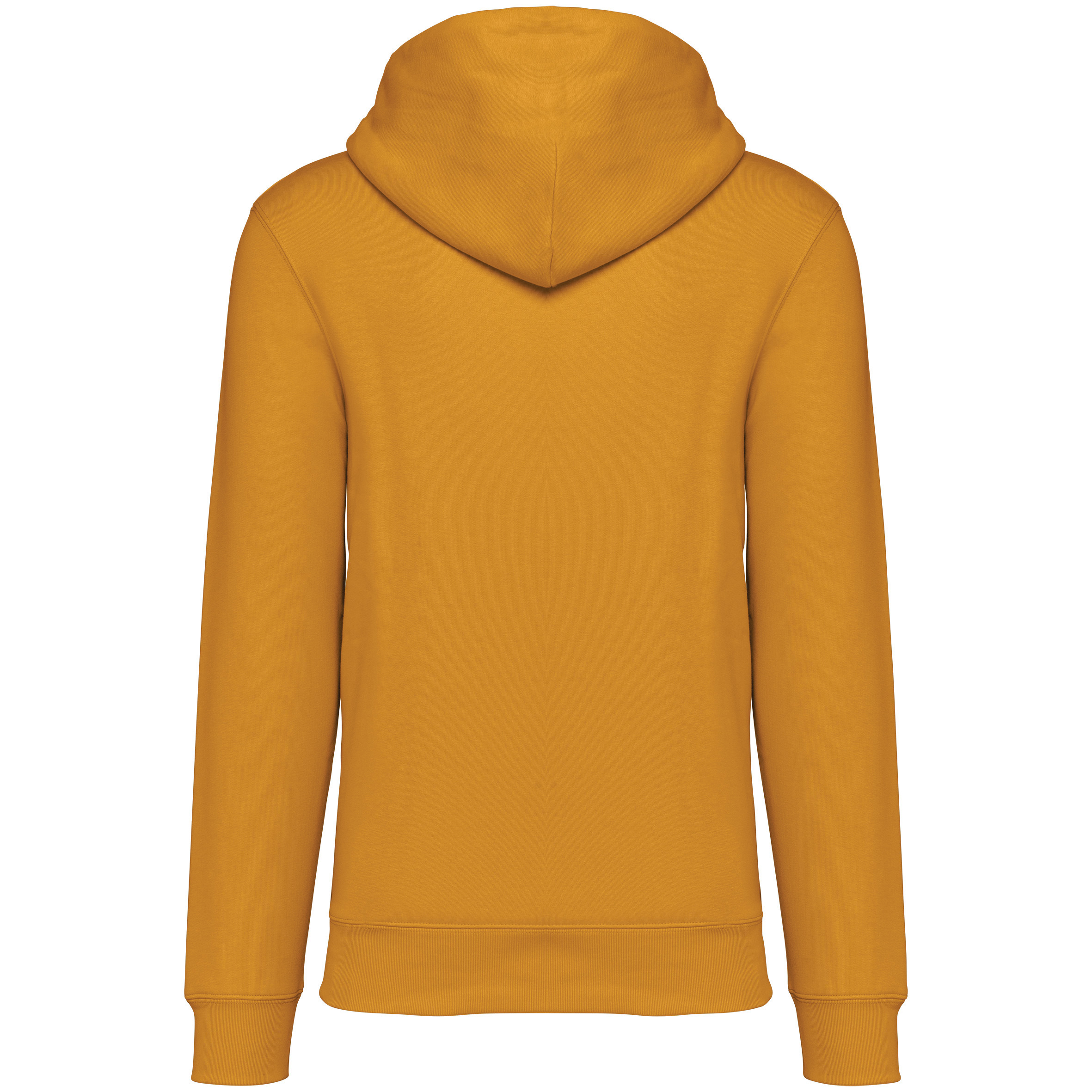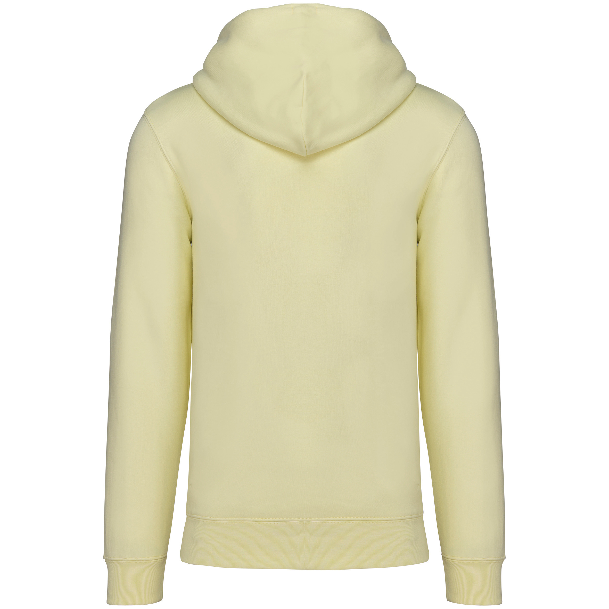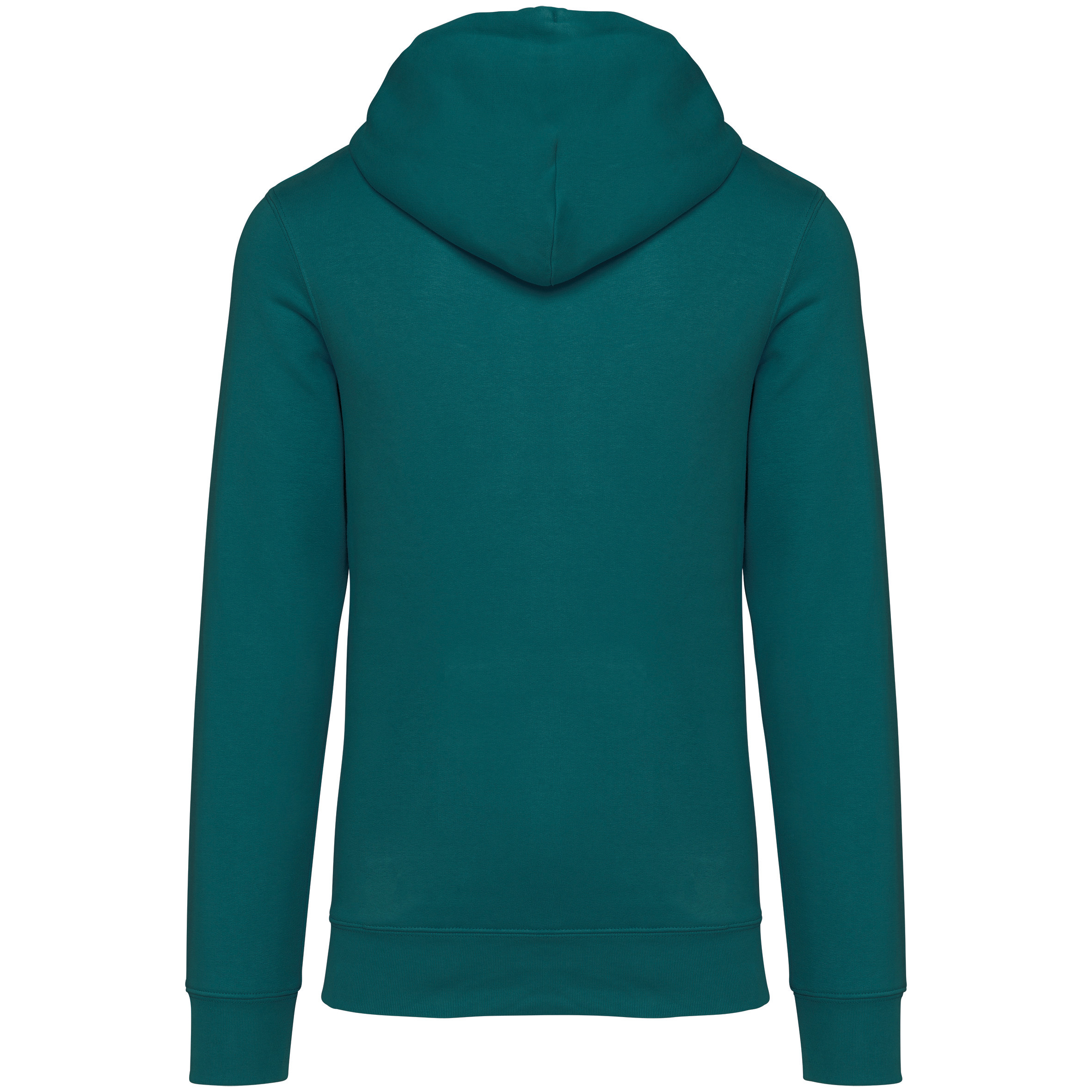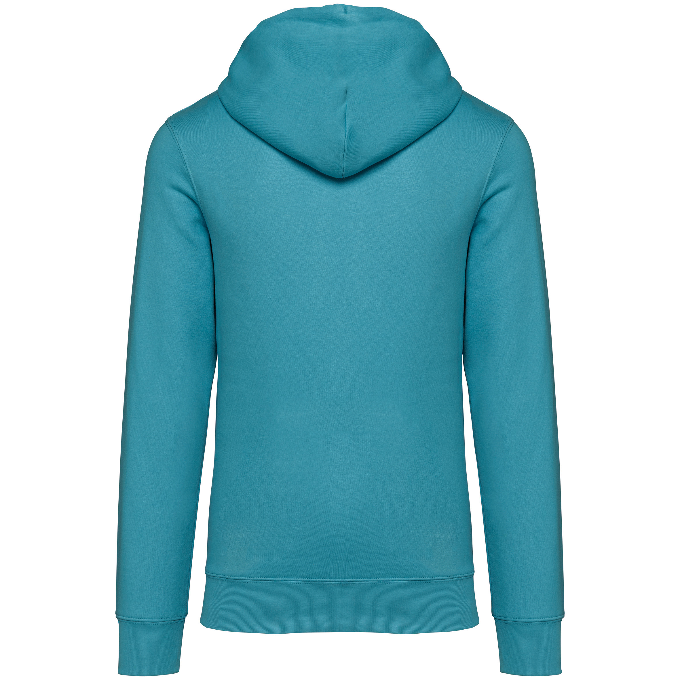 85 % Bio-Baumwolle / 15 % Post-Consumer-Polyester. Gekämmte Ringspun-Baumwolle. Körpernaher Schnitt. Enzymwäsche. Gebürstetes Molton, 3-fädiges LSF (Low Shrinkage Fleece: vorgeschrumpfter Molton). Halbmond am Rücken. Kängurutasche. Strickbündchen 1 x 1 am Saum und Ärmelbündchen. Doppel-Ziernaht an Ärmelbündchen, Armlöchern, Saum und Halbmond. Nackenband auf der Innenseite am. Halsausschnitt am Rücken. Gefütterte Kapuze aus Hauptmaterial mit Verstärkungsstich für Kordel. Abgerundeter Kordelzug mit Kappen und Ösen aus recyceltem Metall.