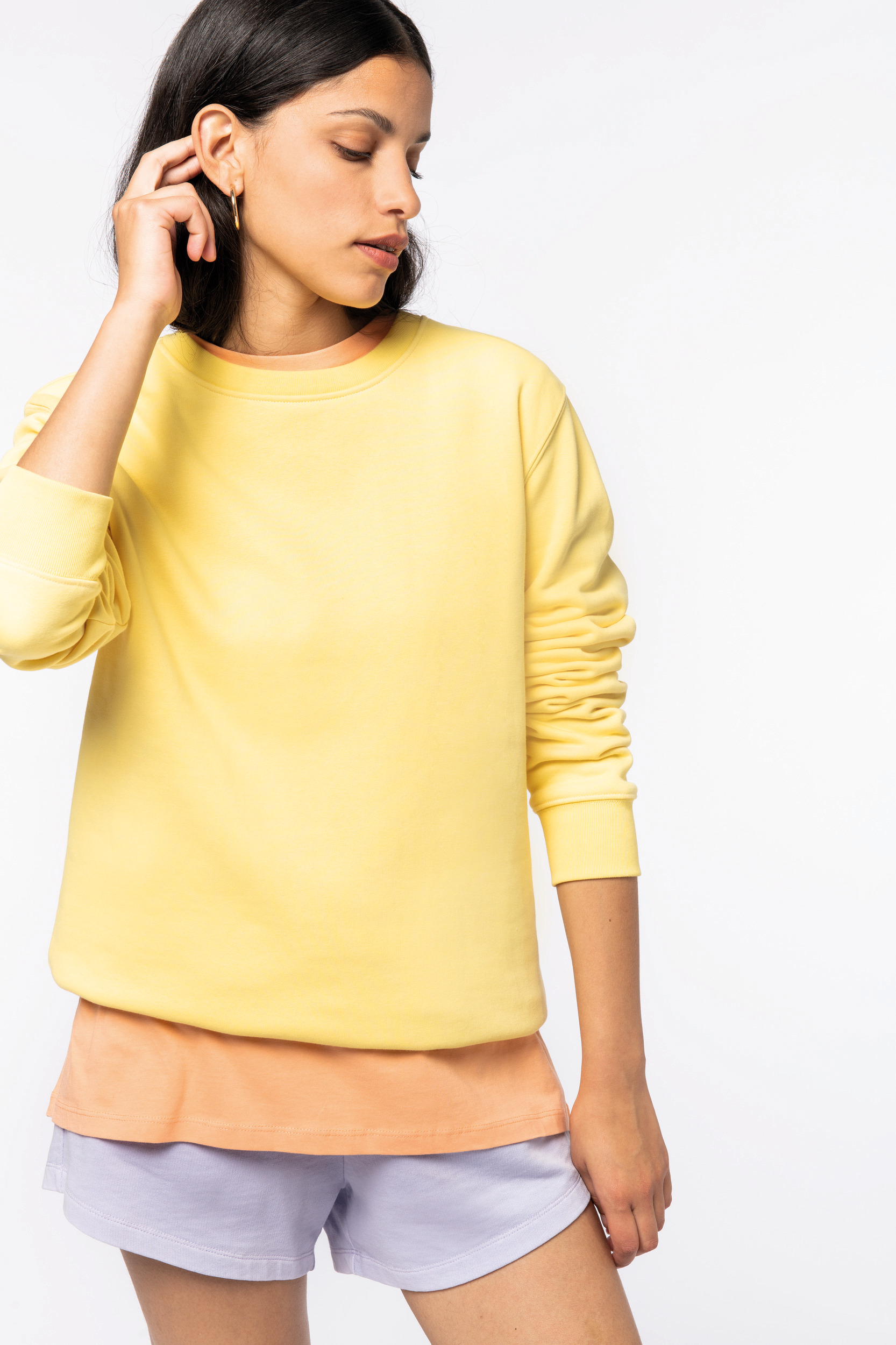 85 % Bio-Baumwolle / 15 % Post-Consumer-Polyester. Gekämmte Ringspun-Baumwolle. Körpernaher Schnitt. Enzymwäsche. Gebürstetes Molton, 3-fädiges LSF (Low Shrinkage Fleece: vorgeschrumpfter Molton). Halbmond am Rücken. Kängurutasche. Strickbündchen 1 x 1 am Saum und Ärmelbündchen. Doppel-Ziernaht an Ärmelbündchen, Armlöchern, Saum und Halbmond. Nackenband auf der Innenseite am. Halsausschnitt am Rücken. Gefütterte Kapuze aus Hauptmaterial mit Verstärkungsstich für Kordel. Abgerundeter Kordelzug mit Kappen und Ösen aus recyceltem Metall.