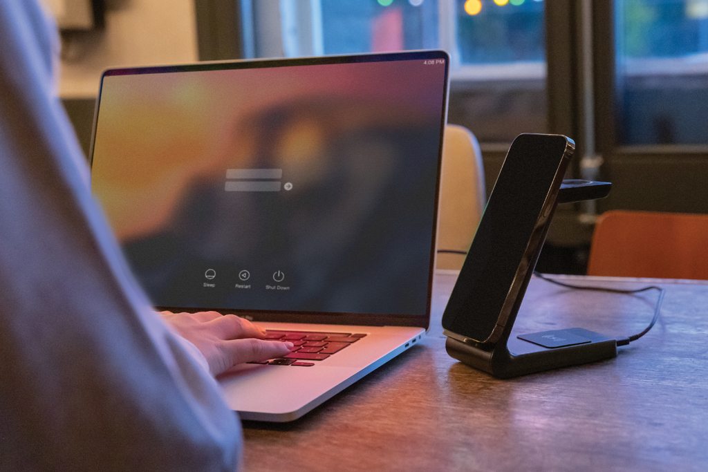 Dieses kabellose Ladegerät lädt Ihr Telefon so schnell wie möglich auf. Das Ladegerät ist mit einer 15W-Wireless-Charging Doppelspule, einer einfachen 5W-Wireless-Charging Spule auf der Rückseite und einem 3W-iWatch-Ladegerät ausgestattet. Inklusive 120cm Type-C Ladekabel aus RCS-zertifiziertem Recycling-TPE.