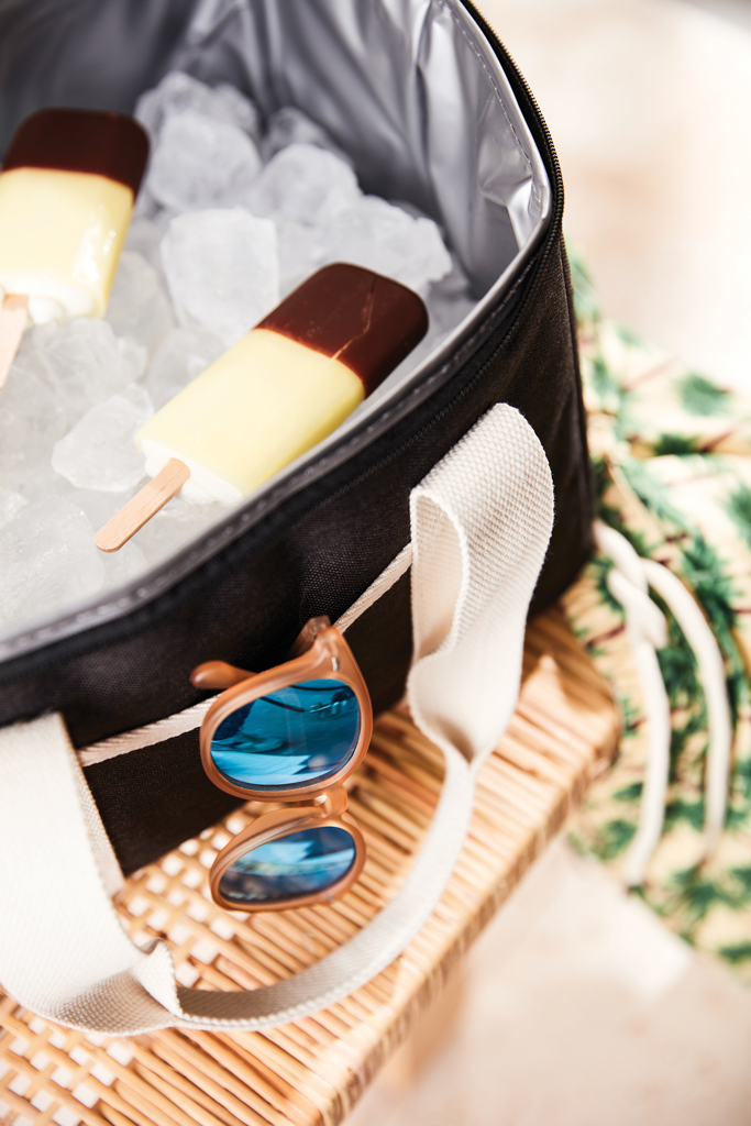 Der ultimative Kühlkorb, Ton in Ton meliert und mit Details aus Kunstleder und Baumwolle.